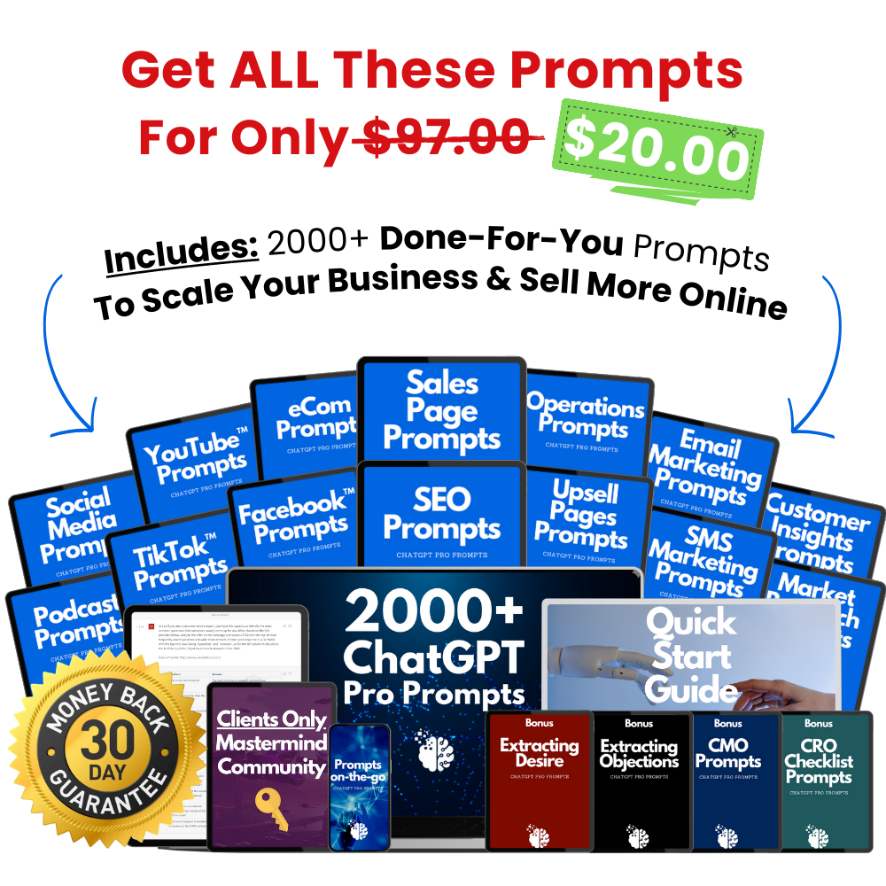 And as a result…this frees you up to grow your businessΒ without highly complicated systems or hiring very expensive marketersΒ – this is the ChatGPT Pro Prompts.